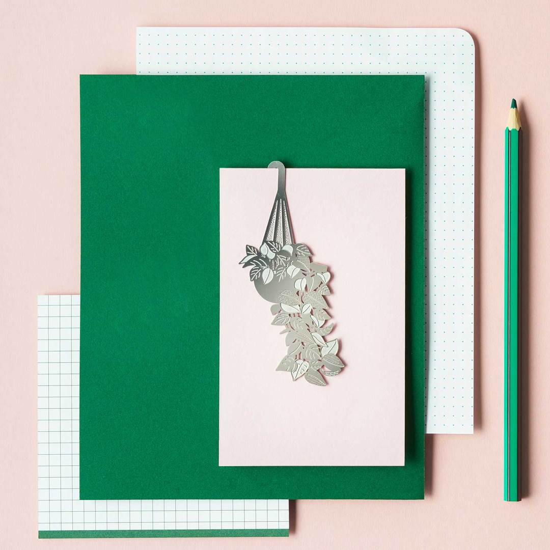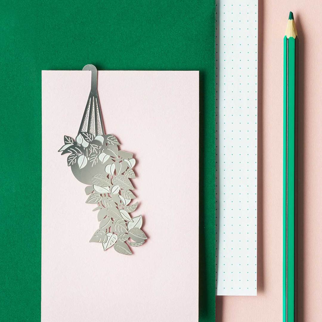 Gravé dans l’acier, ce délicat marque-page à l’effigie du Pothos • Epipremnum aureum retombe en cascade, apportant une touche tropicale à n’importe quelle livre ou document.